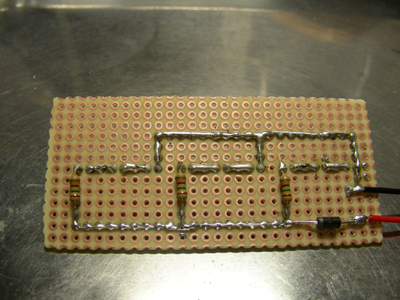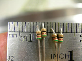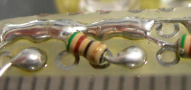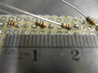 抵抗の足を切り 半田で仮止めして |