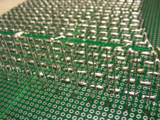 最近細かい作業が多いです これは3ミリの白LEDです イルミネーション用ですが 行き交う配線を処理するのは大変です 0.56ミリの高級半田耐熱電線 普通のタダ細い電線なら半田の熱でメリメリっと溶けてしまします おすすめです 完成品です 100Vコンセントから給電です かなり綺麗ですよ♪ |